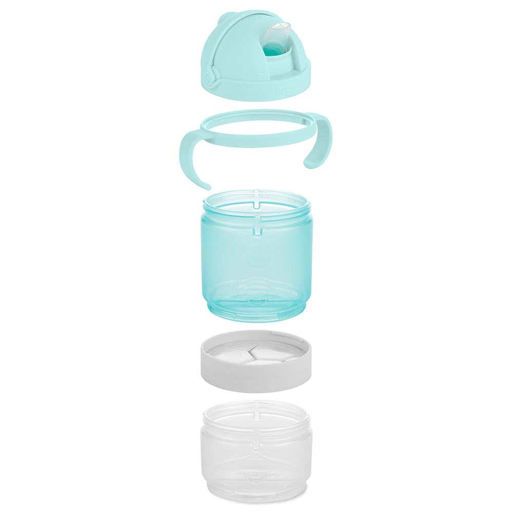 Setul 2 in 1 de la Skip Hop este conceput pentru a fi stivuit si personalizat in functie de nevoile dvs., setul de 5 piese pentru mesele bebelusilor si copiilor mici, ofera optiuni pentru a lua masa sau o gustare - acasa sau in deplasare. Cu doua capace interschimbabile de tip twist-and-lock, doua recipiente si un maner optional, acest set usor de ambalat va permite sa folositi componentele separat sau stivuite impreuna. Umpleti cu cereale, apa, suc si alte produse preferate de micutul dvs. si sunteti gata de plecare.