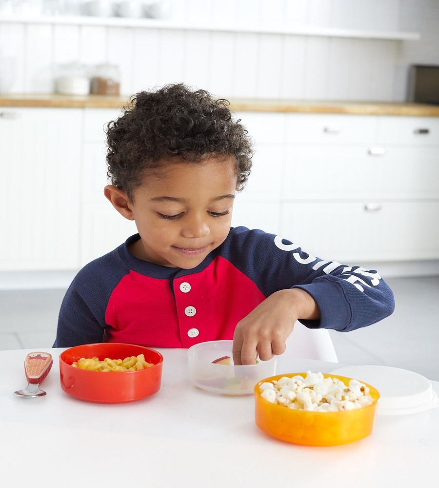 Fiecare masa e mai usoara si mai distractiva cu setul nostru de boluri anti-alunecare! Acest set include 3 boluri de dimensiuni diferite, care sunt prevazute pe spate cu un material anti-derapant, pentru a preveni alunecarea. De asemenea, setul contine si un capac sigur, care se potriveste perfect pentru bolul cu dimensiunile cele mai mari, asa ca este excelent pentru depozitarea resturilor de mancare, transportul alimentelor si depozitarea setului atunci cand nu este folosit. Setul se poate spala in siguranta si la masina de spalat vase.