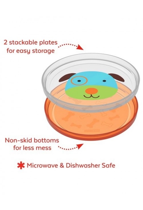 Setul contine o farfurie transparenta cu un animalut din gama Zoo® si o farfurie colorata intr-o nuanta puternica.