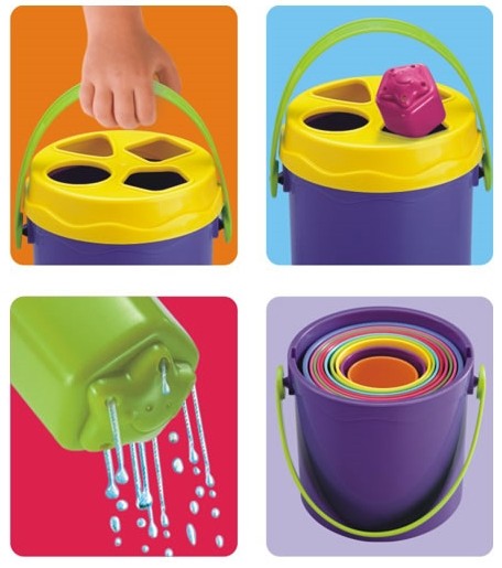 Miniland - Sortator de forme Giantte Produsul este recomandat copiilor cu varsta cuprinsa intre 1 si 2 ani Jocul Giantte ajuta la invatarea formelor si culorilor, stabilirea corespondentelor, a ordinii obiectelor, dezvoltarea coordonarii ochi-mana, imbunatatirea dexteritatii, relatia mare-mic. Setul contine o galetusa cu maner in care "locuiesc" 9 cupe cu dimensiuni progresive, capac cu orificii pentru sortare si patru forme de sortat. Giantte este un prieten bun la plaja, in parc sau in casa: cupele pot fi folosite pentru jocurile cu nisip si apa, formele de sortat au orificii pentru scurgerea apei, cupele se pot cladi unele peste altele (obtineti un turnulet de 92 cm inaltime) sau se pot potrivi unele in altele, galetusa cu capac poate fi folosita ca sortator de forme. Jucaria ocupa un spatiu restrans, toate accesoriile putand fi pastrate in galetusa cu maner.