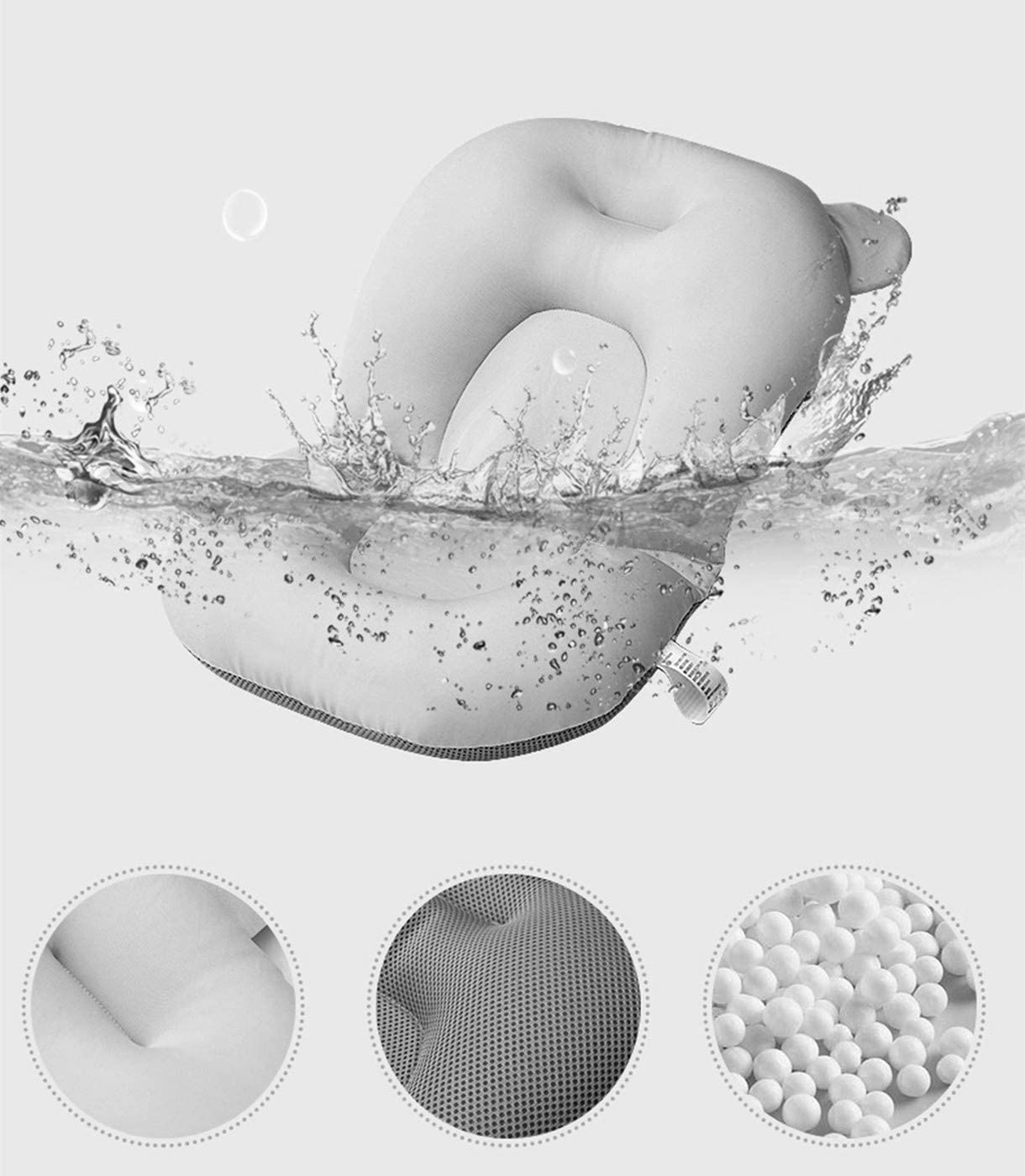 Confectionat din material cu uscare rapida placut la atingere, 100% poliester si umplut cu mici bilute de poliester. ce se muleaza dupa forma corpului bebelusului