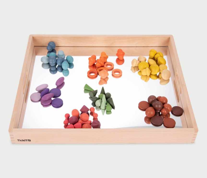 - Setul include: 1 tava cu rama din lemn cu baza de oglinda acrilica.