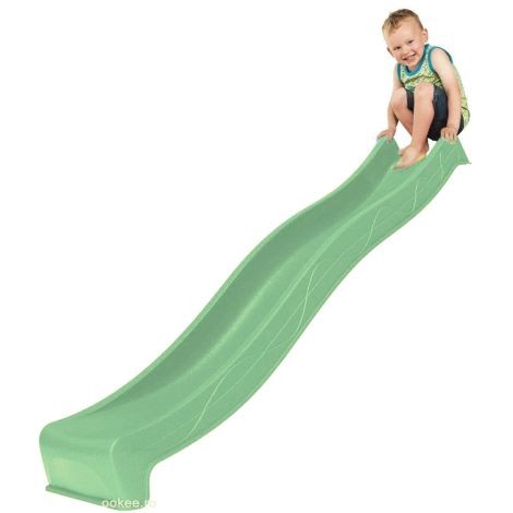 Tobogan 2.90 m Sline HDPE Verde Pastel KBT cu duza de apa Descriere: Are un design unic in valuri si o suprafata mare de alunecare. Este produs din plastic injectat HDPE si prezinta finisaje atent detaliate. Topoganul poate fi folosit si cu apa prin conectarea unui furtun in partea superioara a acestuia. Tratat pentru intemperii si impotriva razelor UV