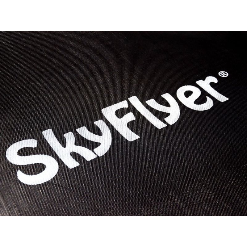 Spre deosebire de alte modele unde plasa este prinsa direct pe barele verticale, singurul punct de presiune fiind capatul de sus al barei care cedeaza foarte usor la presiunea exercitata pe plasa, sistemul trambulinei SkyFlyer, permite ca presiunea sa se distribuie egal pe intreg inelul de sus, astfel incat plasa de siguranta va fi protejata o perioada mult mai lunga de timp.
