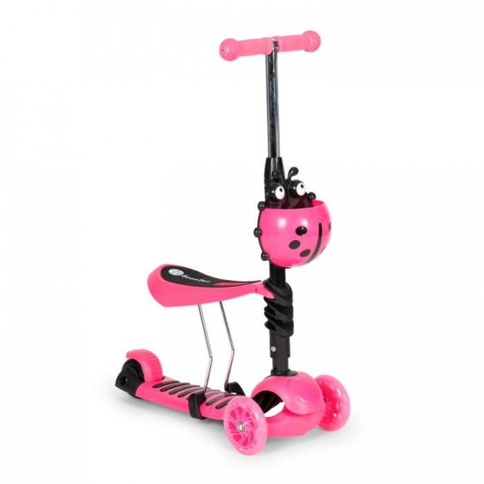 Trotineta 5 in 1 cu sezut si 3 roti cu LED Ecotoys YM-SW-6 – Roz