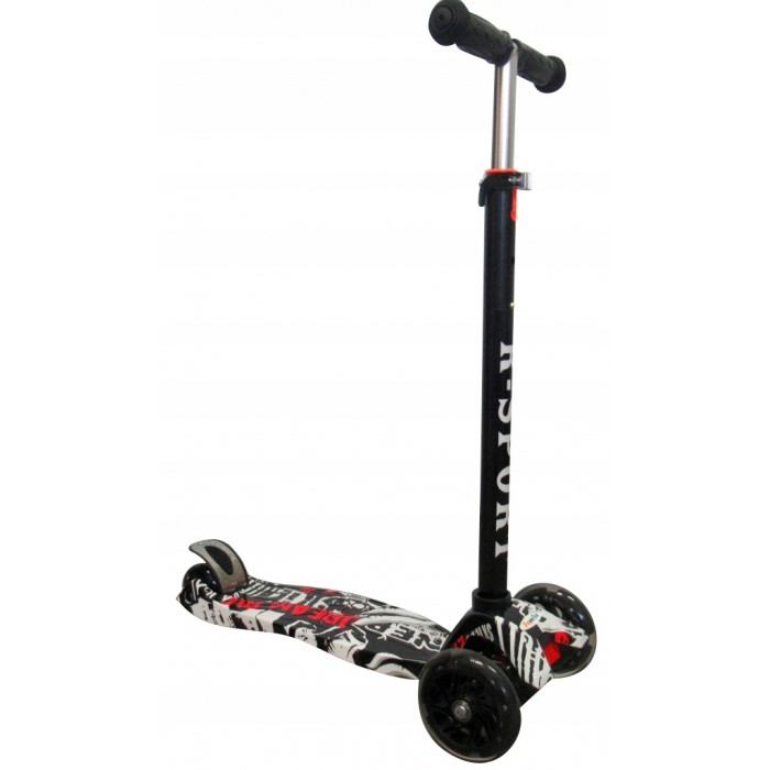 Trotineta are roti din cauciuc cu iluminare LED. Nu sunt necesare baterii.